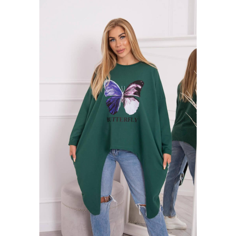 1 kép FiatalDivat Hosszú oversize blúz sötétzöld pillangómintával