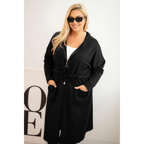 Hosszú női kapucnis pulóver, amely ideális választás hűvösebb napokra, ötvözi a kényelmet, a funkcionalitást és a stílust. Laza szabása remekül illik mindennapi viselethez, valamint sétákhoz vagy hétvégi kirándulásokhoz. Cipzáros pulóver nagy zsebekkel, amely minden női ruhatár elengedhetetlen darabja.
