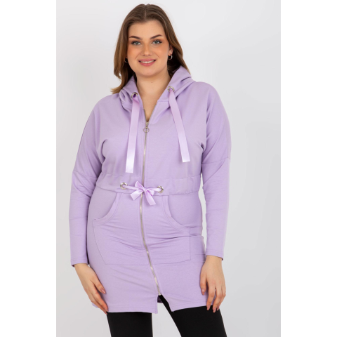 1 kép FiatalDivat Hosszú pulóver kapucnival és cipzárral, modell 46402, lila színű