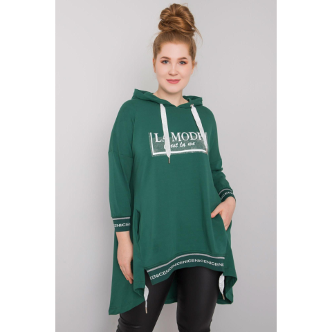 1 kép FiatalDivat Hosszú pulóver La Mode sötétzöld felirattal