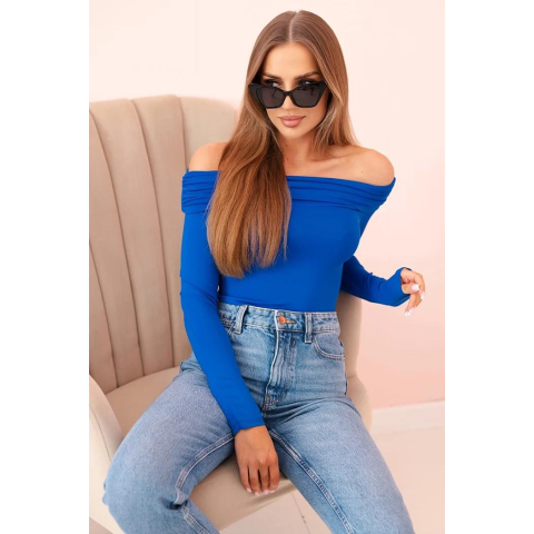 1 kép FiatalDivat Hosszú ujjú, vállakat szabadon hagyó body blúz, 12330-as modell, királykék