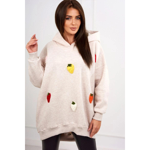 1 kép FiatalDivat Hőszigetelt pulóver eper foltokkal, modell 9629 bézs melange