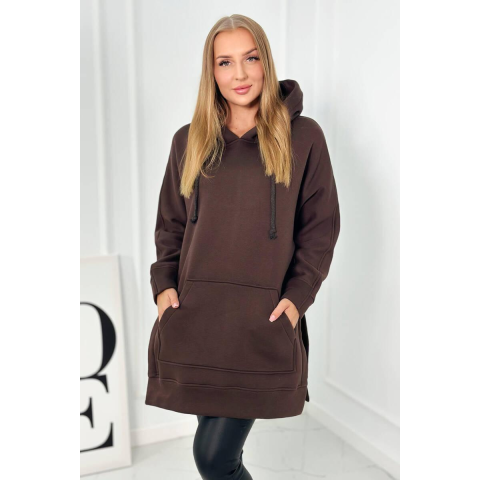 1 kép FiatalDivat Hőszigetelt pulóver hasítékkal és kenguru zsebbel modell 9319 barna