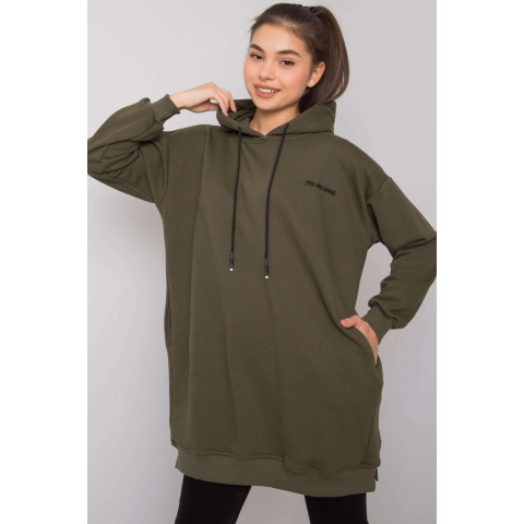 1 kép FiatalDivat Indira hosszabbított pulóver kapucnival és zsebekkel, khaki színű