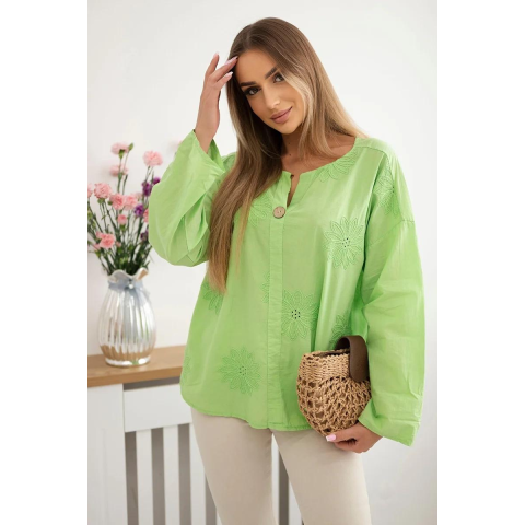 1 kép FiatalDivat Ingblúz hímzett virágokkal, IT-67 világoszöld modell