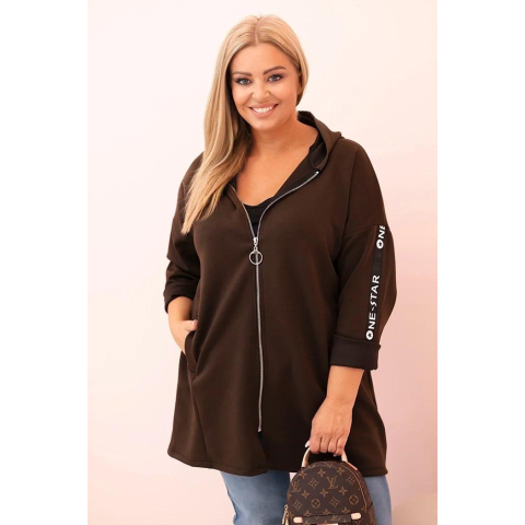1 kép FiatalDivat Kapucnis cipzáras pulóver díszített ujjakkal, 0216 barna modell