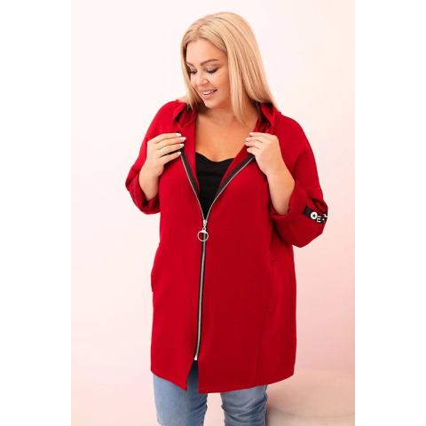 1 kép FiatalDivat Kapucnis cipzáras pulóver díszített ujjakkal, 0216-os modell, piros