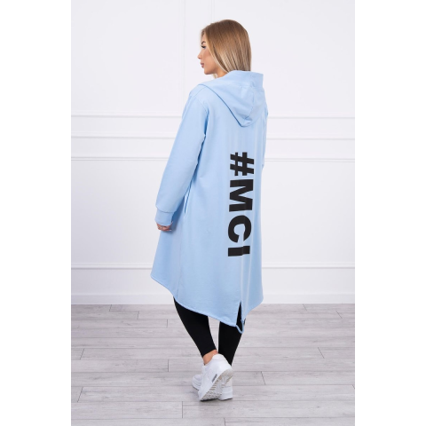 1 kép FiatalDivat Kapucnis kardigán nagy #MCI felirattal a hátan világos kék