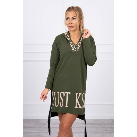 1 kép FiatalDivat Kapucnis ruha hosszabbított hátsó résszel modell 9161 khaki szín