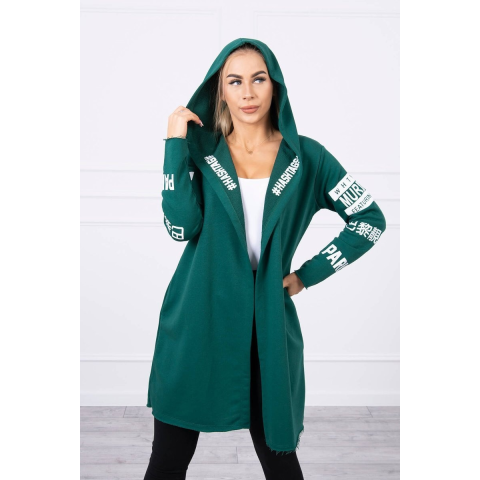 Bemutatjuk Önnek ezt a kapucnival és felirattal ellátott hosszú kardigánt.