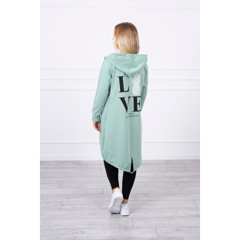 1 kép FiatalDivat Kardigán kapucnival és LOVE felirattal a hátán sötét menta zöld