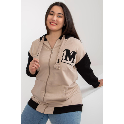 1 kép FiatalDivat Kétszínű pulóver cipzárral és kapucnival modell 27285 bézs+fekete