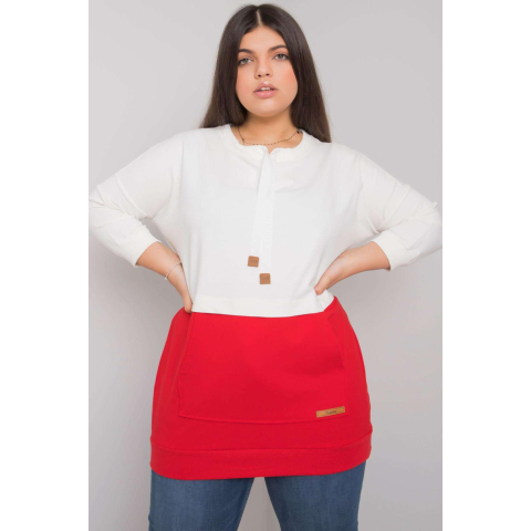 1 kép FiatalDivat Kétszínű Sira pulóver kenguru zsebbel, fehér+piros