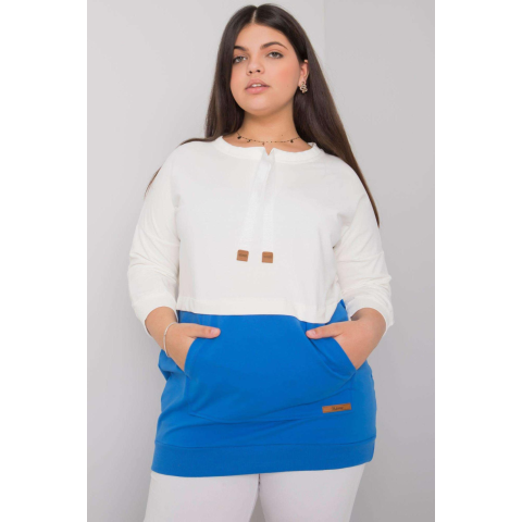 1 kép FiatalDivat Kéttónusú Sira pulóver kenguru zsebbel fehér+királykék