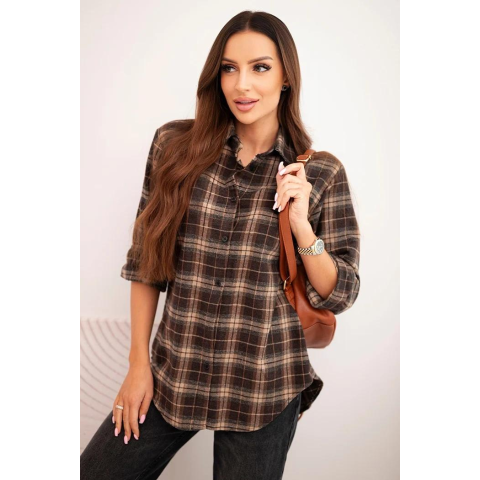 1 kép FiatalDivat Kockás flanel ing A35 modell barna+camel szín