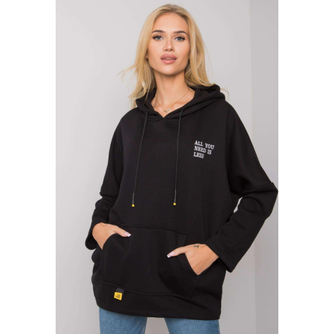 1 kép FiatalDivat Laylla hosszabbított pulóver kapucnival és kenguru zsebbel, fekete