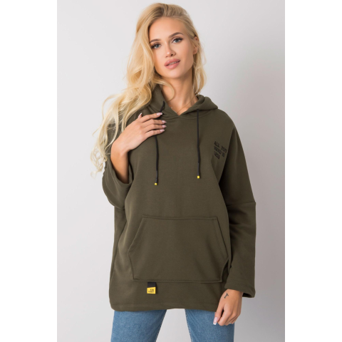 1 kép FiatalDivat Laylla hosszabbított pulóver kapucnival és kenguru zsebbel, khaki színű
