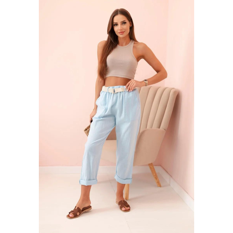 1 kép FiatalDivat Len-pamut nadrág övvel, 52888 világoskék modell