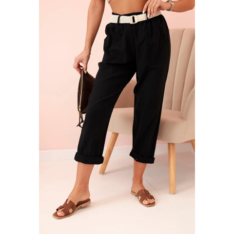 1 kép FiatalDivat Len-pamut nadrág övvel, modell 52888 fekete