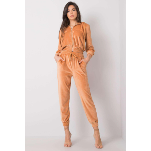 1 kép FiatalDivat Maddalena velúr tréningruha szett cipzárral és kapucnival, teve színű