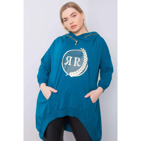 1 kép FiatalDivat Meghosszabbított Fantasy pulóver mintával és cipzárral a kapucniján, türkiz