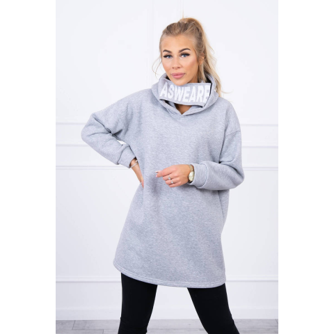 1 kép FiatalDivat Meleg szabadidő felső kapucnival és nyakékkel, melyen ASWEARE felirat van szűrke