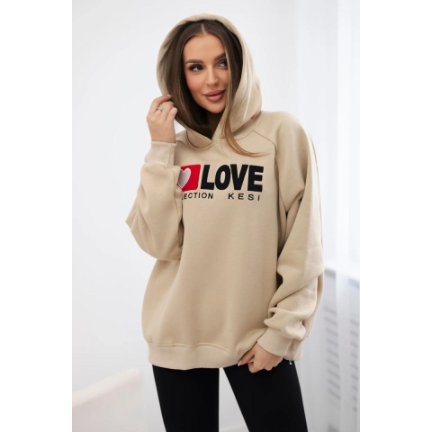 1 kép FiatalDivat Melegített pamut pulóver kapucnival, modell 9799 világos bézs