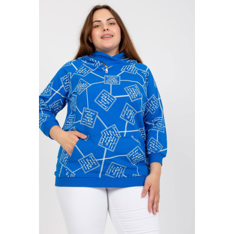 1 kép FiatalDivat Mintás pulóver cipzárral a kapucniján 56669 királykék modell