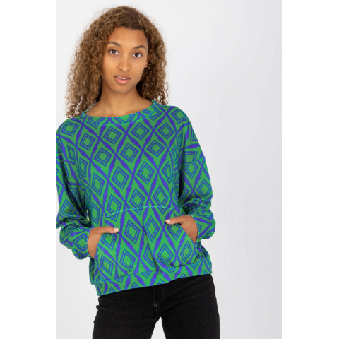 1 kép FiatalDivat Mintás velúr pulóver kapucni nélkül modell 18850 sötétzöld