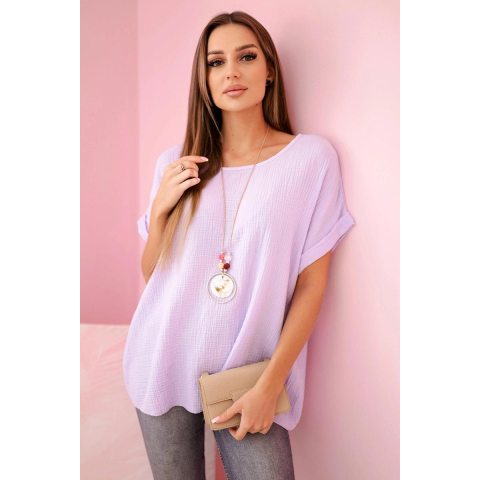 1 kép FiatalDivat Muszlin blúz medállal IT-68 színű világos lila színű