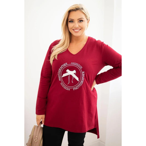 1 kép FiatalDivat Nyomott mintás blúz hosszabb hátrésszel, 6960 bordó modell
