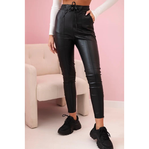 1 kép FiatalDivat Ökobőrből készült nadrág derékmegkötővel, 68741-es modell, fekete