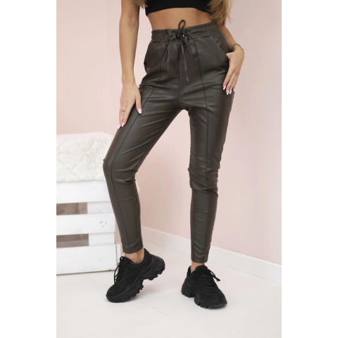 1 kép FiatalDivat Ökobőrből készült nadrág derékmegkötővel, 68741-es modell, khaki színben