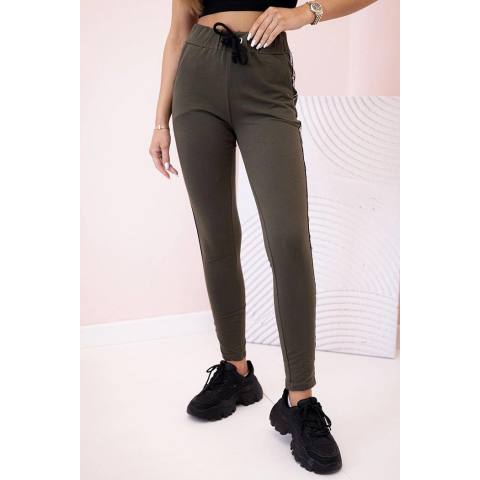1 kép FiatalDivat Oldalt csíkos, deréknál megkötős melegítőnadrág, 67221-es modell, khaki színben.