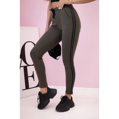 1 kép FiatalDivat Oldalt csíkos és derékban megkötős melegítőnadrág, 67774-es modell, khaki színben.