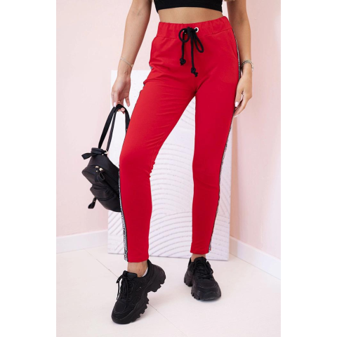 1 kép FiatalDivat Oldalt csíkos és deréknál megkötős melegítőnadrág, 67221-es modell, piros