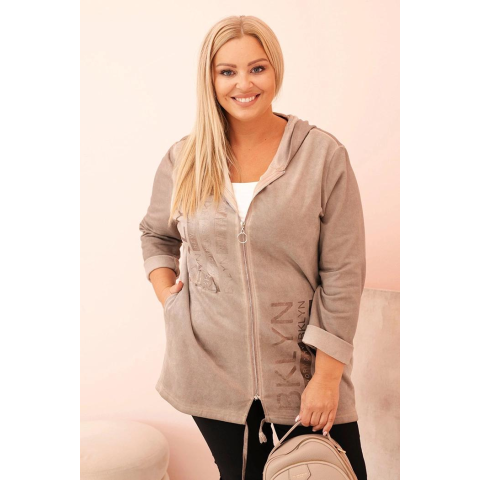 1 kép FiatalDivat Oversize cipzáras kapucnis pulóver nyomtatással, 4146-os modell fango színben