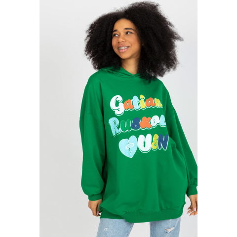 FiatalDivat Oversize pulóver kapucnival és mintával 11748 zöld