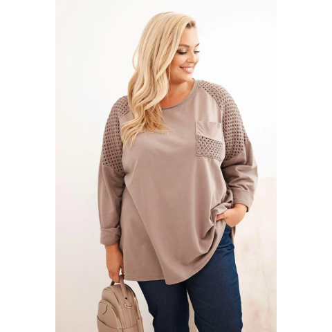 1 kép FiatalDivat Oversize pulóver perforált applikációval 3790-es modell fango színben