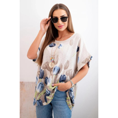 1 kép FiatalDivat Pamut blúz virágmintával, 10739-es modell, bézs