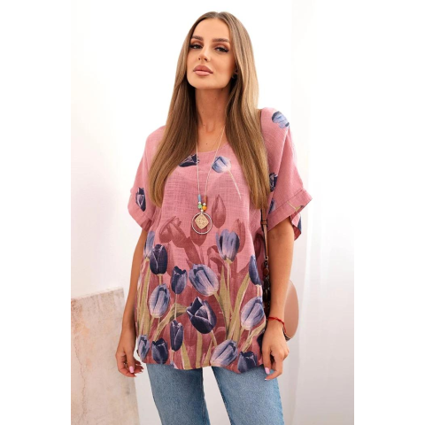 1 kép FiatalDivat Pamut blúz virágmintával, 10739-es modell, ódivatú rózsaszín