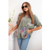 1 kép FiatalDivat Pamut blúz virágmintával, 12038-as modell, khaki színben