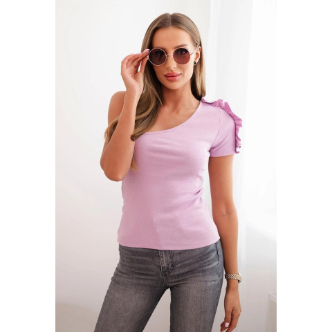 1 kép FiatalDivat Pamut egyvállas fodros blúz 69372-es modell lila szín