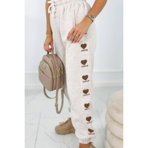 1 kép FiatalDivat Pamut melegítőnadrág oldalán Amour hímzéssel, bézs melange színű