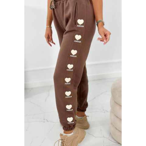 1 kép FiatalDivat Pamut melegítőnadrág oldalán Amour hímzéssel, mokka színű
