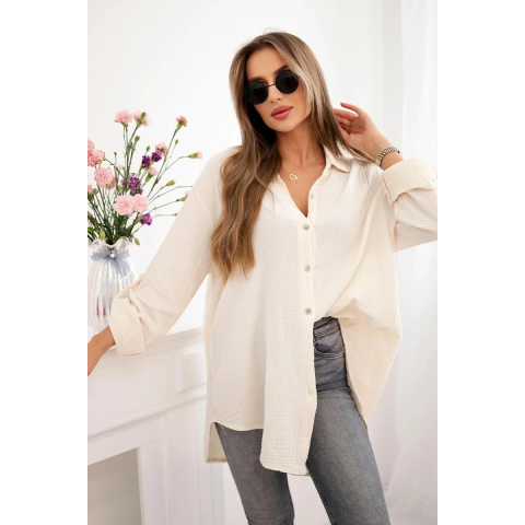 1 kép FiatalDivat Pamut muszlin ing/blúz modell 65622 világos bézs