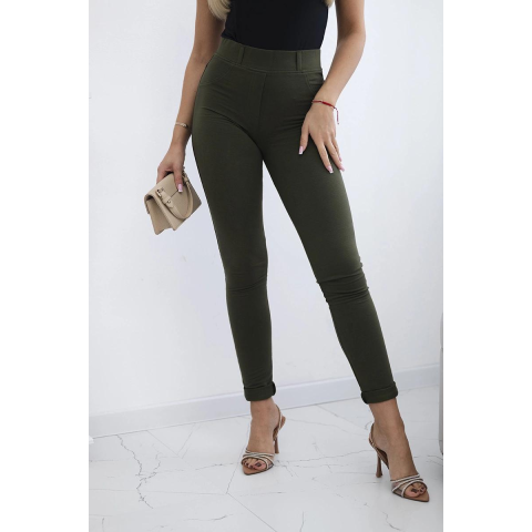 1 kép FiatalDivat Pamut nadrág cirkóniával a hátsó zsebeken, 1120-as modell, khaki színű