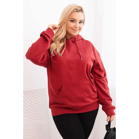 1 kép FiatalDivat Pamut oversize kapucnis kenguruzsebes pulóver HIT02 bordó modell