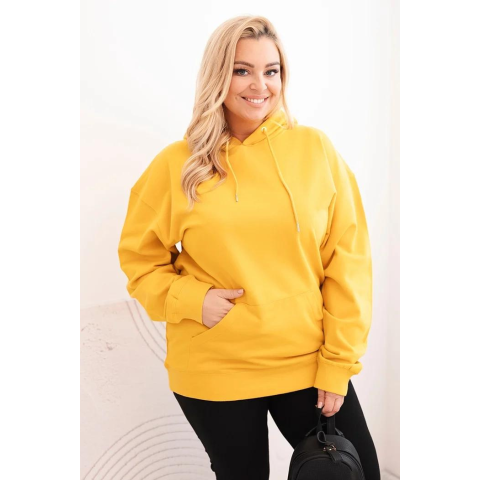 1 kép FiatalDivat Pamut oversize kapucnis kenguruzsebes pulóver HIT02 mustár színben