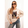 1 kép FiatalDivat Pamut pulóver elöl nyomtatással, 2818-as modell, bézs